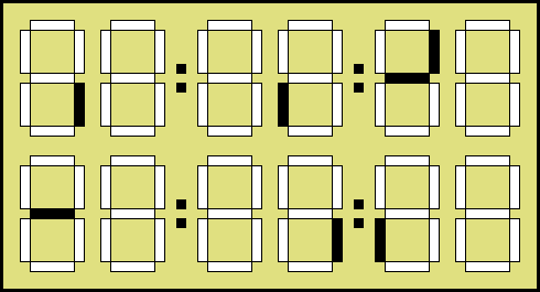 هناك فرق 131 ثانية بين الساعتين العلوية والسفلية فما هو توقيت كل من الساعتين ؟ علما بأن الساعتين تعملان بنظام الأربع والعشرين ساعة . |