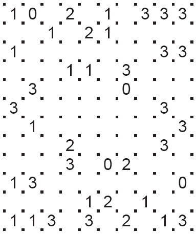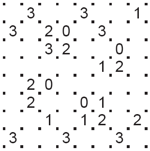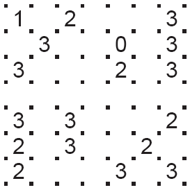 تسمى هذا النوع من الألغاز بأسماء عديدة منها الترابط الانزلاقي ( slitherlink ) والحواجز ( fences ) والسلي لين ( sli-lin ) وغيرها .يتكون هذا النوع من الألغاز من عدد من النقاط مرتبة على شكل مربعات بعض منها تحمل أرقاما ويشير كل عدد إلى عدد الحواجز التي يجب وضعها في كل مربع والمربعات التي لا تحمل أرقاما تعني ( أي عدد ) أي بالامكان وضع أي عدد من الحواجز للمربعات التي لا تحمل أرقاما و المطلوب ربط النقاط الموجودة بحيث يكون عدد الحواجز عند كل مربع مطابقا للعدد المعطى ويشترط أن يكون الربط بين الحواجز على شكل منحني مغلق ولا يكون هنا أي حاجز مفصول لوحده .لاحظ الشكلين أدناه الذي يمثل اللغز على اليمين والحل على اليسار: | ||