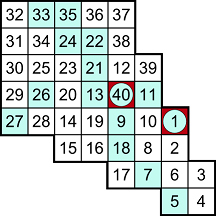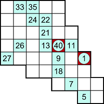 هذا النوع من الألغاز ذات قواعد بسيطة جدا. المطلوب الانتقال من الرقم (واحد) افقيا وعموديا وقطريا حتي آخر رقم (40) في هذا المثال. | ||