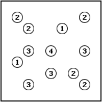 المطلوب ربط جميع الدائر بعضها ببعض يجب أن ينطلق الشعاع (الخط) من جهة النقطة دائما ويشير الأرقام إلى عدد المرات التي يغير فيها الشعاع اتجاهه ليلتقي بالنقطة الأخرى ز لاحظ المثال أدناه: |