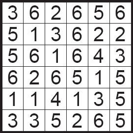 1) السودوكو الصغير:بحجم(4×4) وبأربعة مجاميع , وبحجم ( 6×6) وبستة مجاميع كل مجموعة بأبعاد (2×3). | ||