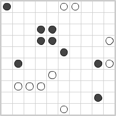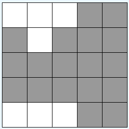 المطلوب إيجاد المناطق السوداء حيث يشير الدوائر السوداء إلى وجود مناطق سوداء حوله أكثر من المنطق البيضاء.وتشير الدوائر البيضاء إلى وجود مناطق بيضاء حوله أكثر من السوداء. والدوائر الرمادية تدل على عدد متساوي من المناطق البيضاء والسوداء حوله. لاحظ المثال أدناه: |