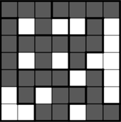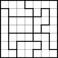 المطلوب في هذا النوع من الألغاز وضع حواجز (مربعات سوداء) ضمن قواعد معينة. تنقسم الشبكة إلى غرف تحتوي كل غرفة على عدد من المربعات الفارغة. الغرف التي تحمل أرقاما يجب أن تحوي عددا مساويا من الحواجز ,أما التي لا تحمل أرقاما فمن الممكن أن يكون أي عدد من الحواجز. كما يجب أ لا تتجاور حاجزان (أفقيا أو عموديا) ويجب أن لا تتجاور مربعات بيضاء لثلاثة غرف متجاورة (كما في الشكل على اليمين) ويجب أ لا يكون المربعات البيضاء منفصلة (الشكل على اليسار). |