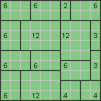 9) سودوكو المجموع (قاتل سودوكو) : عبارة عن شبكة سودوكو مقسمة إلى مجاميع كل منها تحمل مجموعا معينا والمطلوب ملئها بالأرقام ليكون مطابقا للمجموع المعطى ويكون سودوكو في نفس الوقت. | ||