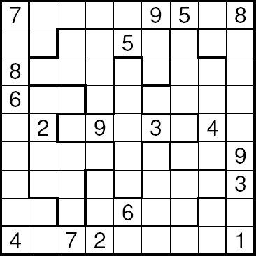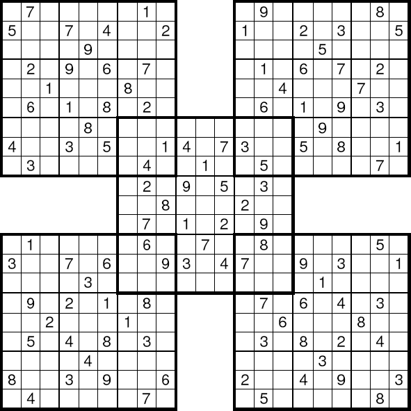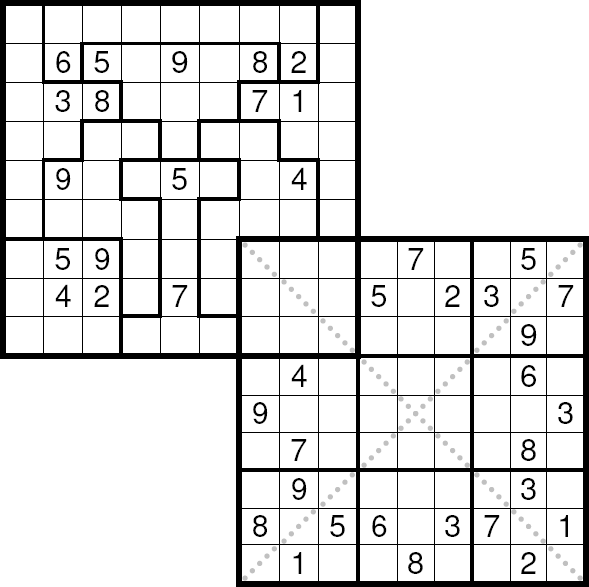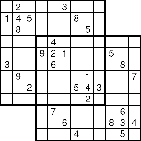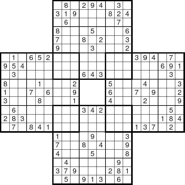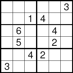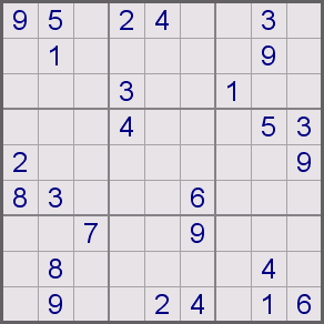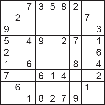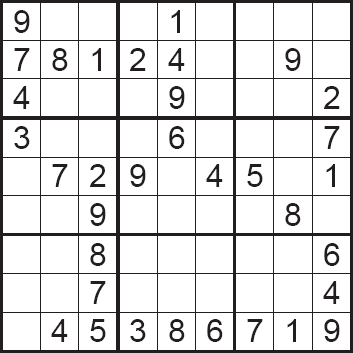 áÚÈÉ ÓæÏæßæ ( sudoku ) äÔÑÊ Ãæá ãÑÉ Ýí ÕÍíÝÉ ÃãÑíßíÉ ÓäÉ 1979 æáßä ÇáÃãÑ ÃÎÐ ÔåÑÉ æÇÓÚÉ Ýí ÇáíÇÈÇä ãäÐ ÚÇã 1986 æÞÏ ÃÕÈÍ ÔÇÆÚÇ æÚáì äØÇÞ æÇÓÚ ãäÐ ÚÇã 2005. æÇááÚÈÉ Ýí ÛÇíÉ ÇáÈÓÇØÉ ÍíË ÃäåÇ ÚÈÇÑÉ Úä 81 ãÑÈÚÇ ãæÒÚÇ Úáì ÊÓÚÉ ãÌÇãíÚ 3×3 ÇáãØáæÈ æÖÚ ÇáÃÑÞÇã ãä 1 Åáì 9 Ýí åÐå ÇáãÑÈÚÇÊ Úáì Ãä áÇ íÊßÑÑ Ãí ãäåÇ Úáì äÝÓ ÇáÕÝ Ãæ ÇáÚãæÏ Ãæ ÇáãÌãæÚÉ. áÇÍÙ ÇáÔßáíä ÃÏäÇå ÇáÐí íãËá ÇááÛÒ Úáì Çáíãíä æÇáÍá Úáì ÇáíÓÇÑ: | ||