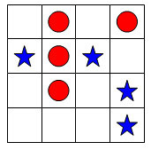 1) قسم الشكل الآتي إلى أربعة مناطق متطابقة يحتوي كل منها على دائرة و نجمة. |