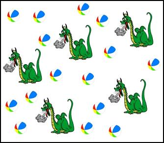 2) ارسم أربعة خطوط مستقيمة لتفصل التنين عن الكرات . | ||