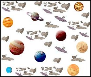 4) ارسم تسعة خطوط مستقيمة لتفصل الكواكب عن الصخور. يجوز رسم الخط فوق الصخور ولا يجوز رسم أي خط فوق أي كوكب . |