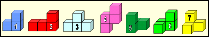 لاحظ كيف يتم تجميع القطع السبعة لتكون مكعبا كاملا . | ||