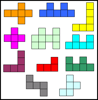 1) اجمع القطع الإحدى عشر الآتية لتكون مربعا بأبعاد 8 × 8 . | ||
