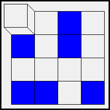 من ألغاز الحركة (ألغاز تدوير المكعب) والمطلوب تدوير مكعب على مربعات الشبكة إلى أن يصتبغ جميع أوجه المكعب. وفقا لقوانين وهي: |