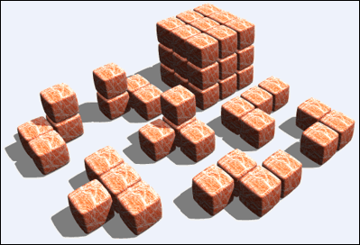 ثلاثية الأبعاد الغير المتداخل مثل مكعب سوما . | ||||||