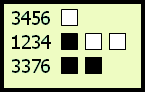 1) أمامك عدد سري مكون من أربعة أرقام غير مكررة يمكنك معرفته من خلال العلامات المعطاة بجانب كل رقم حيث يرمز المربع الأسود إلى رقم صحيح في المكان الصحيح والمربع الأبيض على رقم صحيح في المكان الخاطيء .فما هو هذا العدد؟