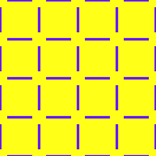 لاحظ الدوائر بين المربعات.إنها غير موجودة في الواقع. | ما لون الدوائر بين المربعات ؟ إنها بيضاء تارة و سوداء تارة أخرى. | |