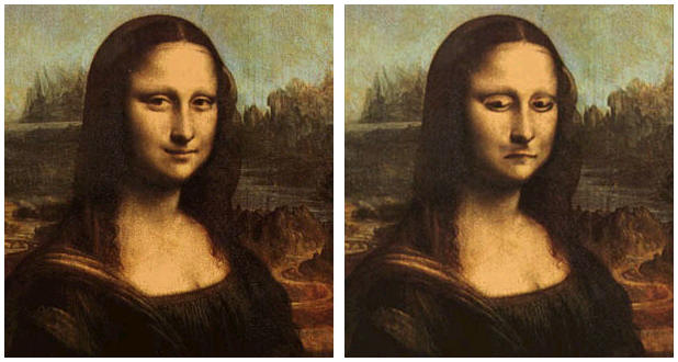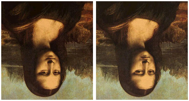 أنظر للصورتين المقلوبتين للموناليزا ثم أنظر للصورتين في الأسفل . |