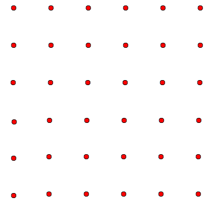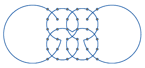 الآن و باستعمال الفرجال ارسم ستة أقواس ( القوس هو أي جزء من الدائرة ) لتربط النقاط الستة والثلاثين دون رفع القلم من الورقة. | ||||||||||||