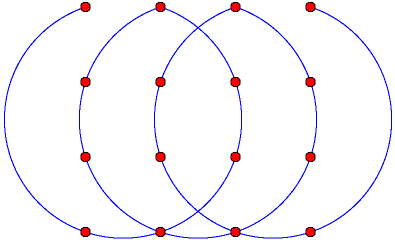 في الشكل أدناه قمنا برسم ثلاثة أقواس لربط ستة عشر نقطة . | ||||||||||||