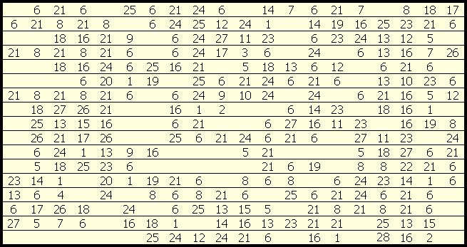 هذه قصة مكتوبة باللغة العربية من اليمين إلى اليسار تم استبدال كل حرف فيها برقم- مع وضع فراغات بين الكلمات لتجنب دمجها مع الكلمة الأخرى- . المطلوب فك رموز هذه القصة وسردها كاملة. | ||