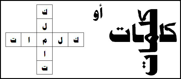 من الألغاز اللطيفة ألغاز (التعابير) وفي هذا النوع من الألغاز يتم وضع كلمة او كلمات معينة ضمن وضعية معينة والمطلوب معرفة على ماذا تدل . لاحظ المثال أدناه الذي يرمز إلى (الكلمات المتقاطعة): |